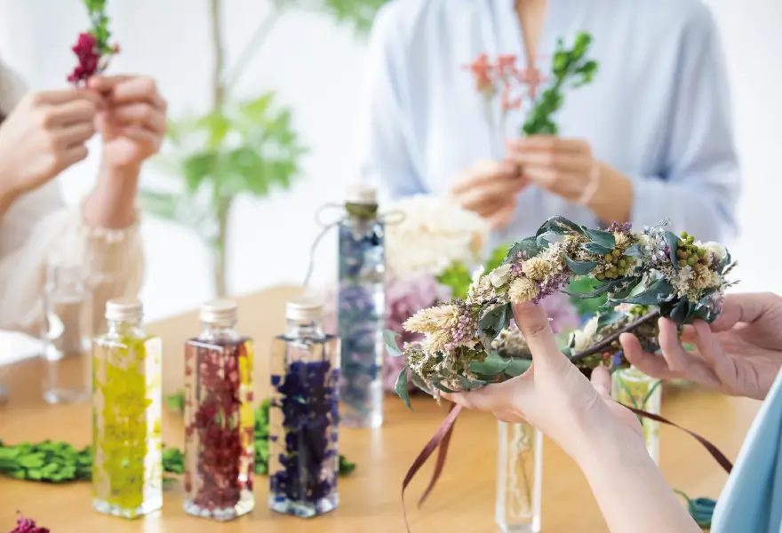 フラワーアレンジメント教室で季節の花に触れ心豊かな時間を。初心者歓迎。作品作りと交流をご提供。